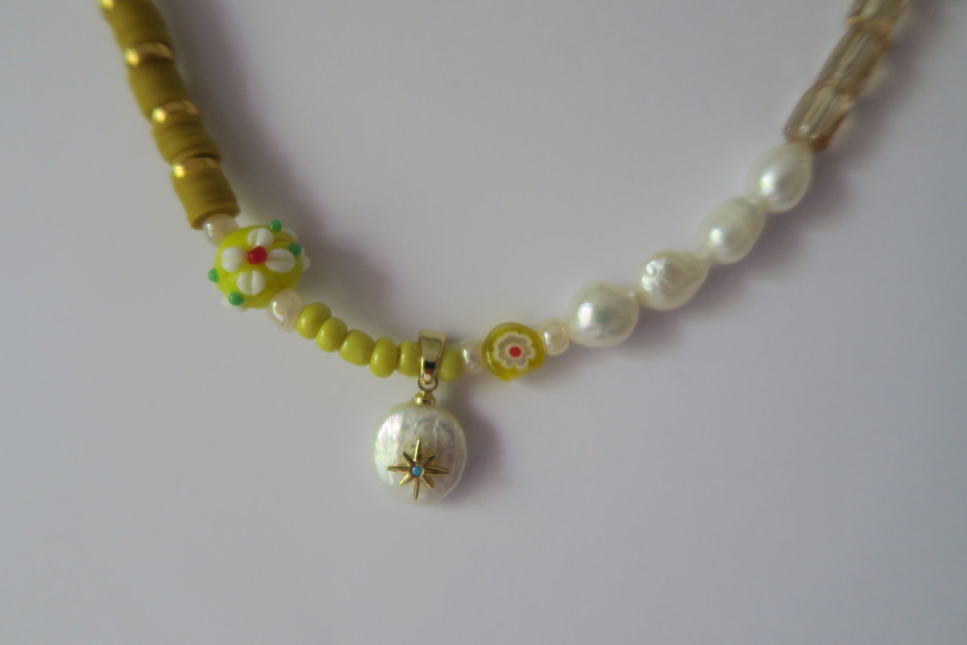 Elevate your everyday style with the Yellow Midi Mix. This 21-inch piece combines freshwater pearls with gold-plated hardware. Perfect for layering or wearing solo, this midi-length necklace is the timeless accessory you'll reach for again and again.