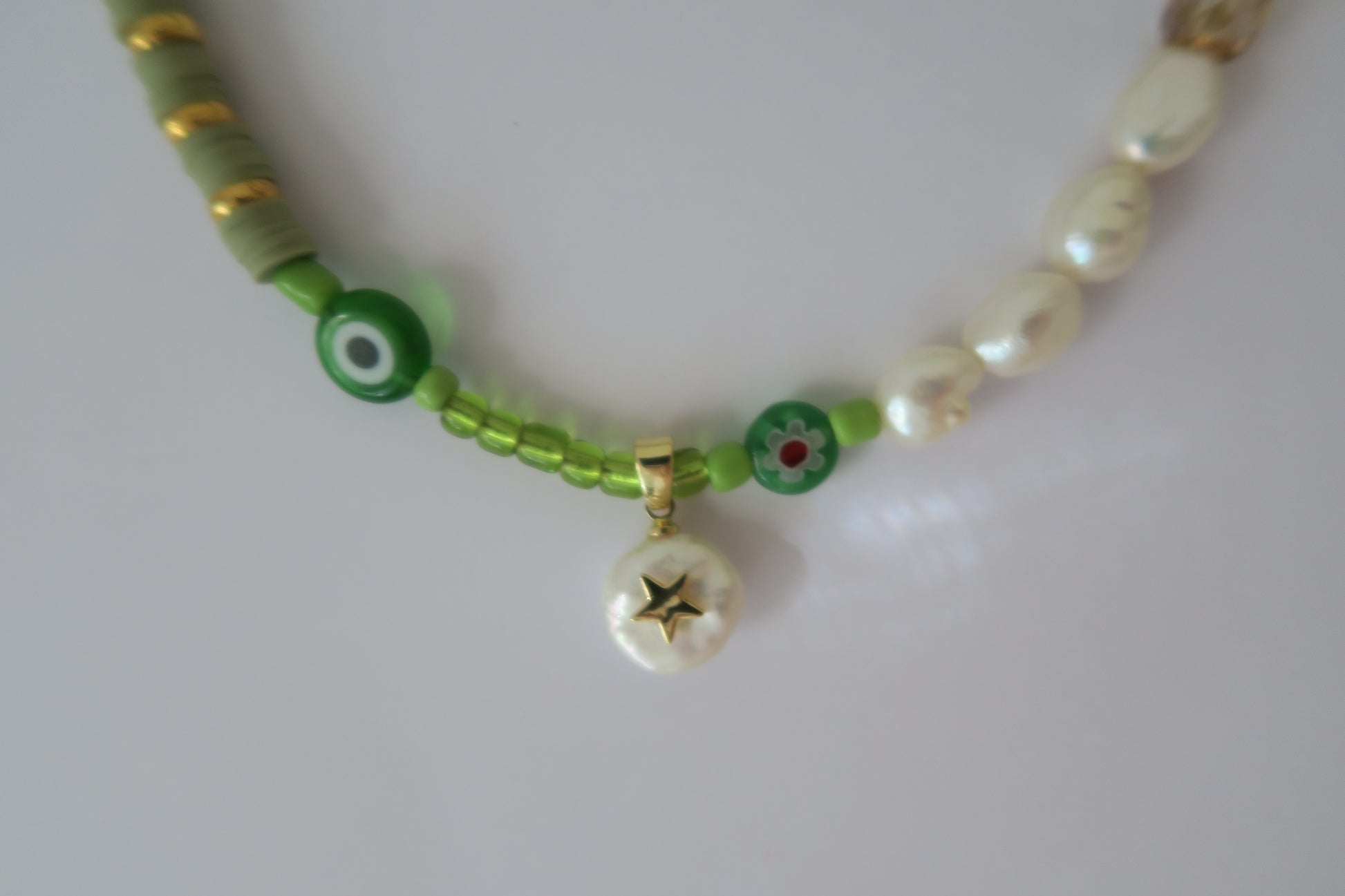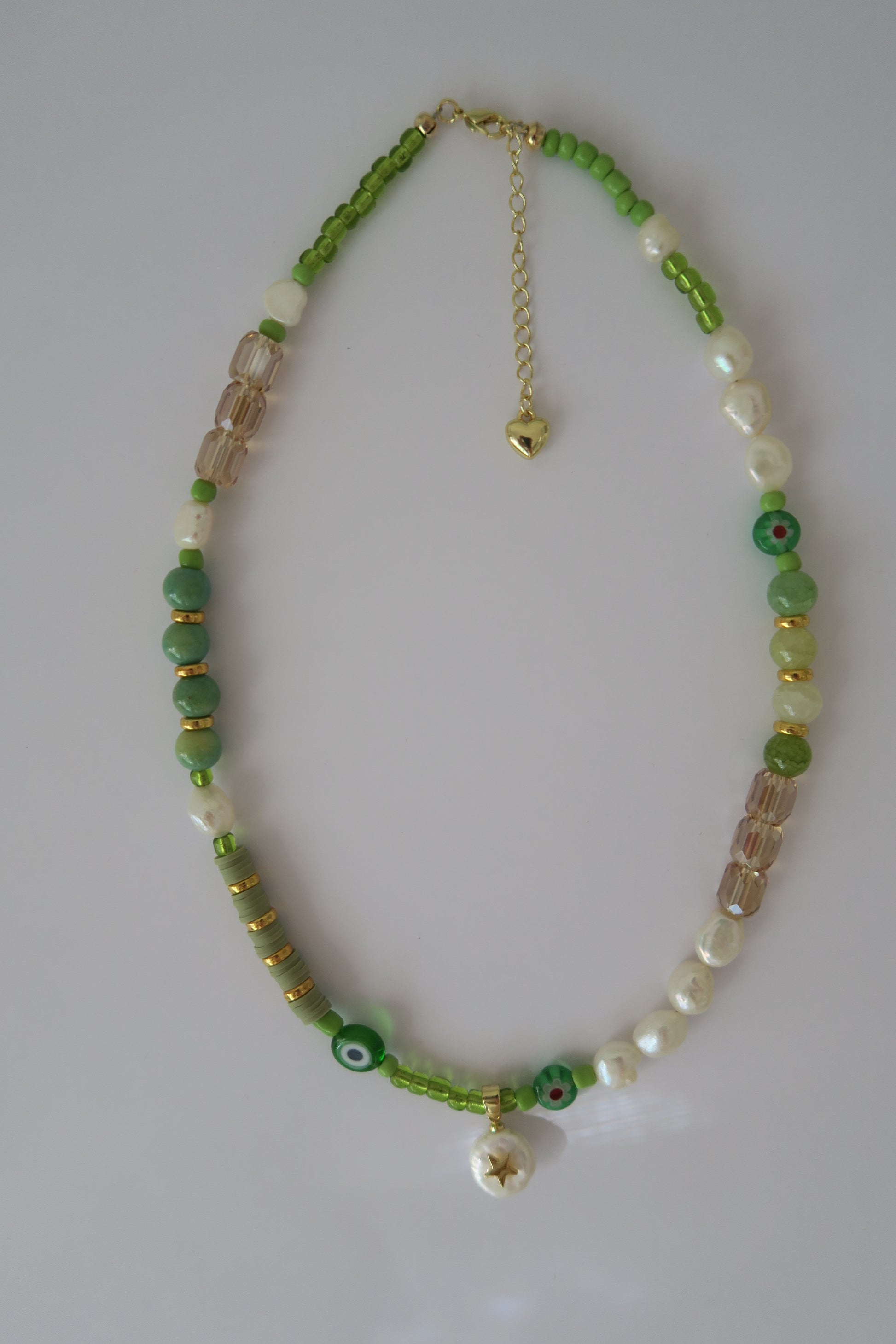 Elevate your everyday style with the Green Midi Mix. This 21-inch piece combines freshwater pearls with gold-plated hardware. Perfect for layering or wearing solo, this midi-length necklace is the timeless accessory you'll reach for again and again.